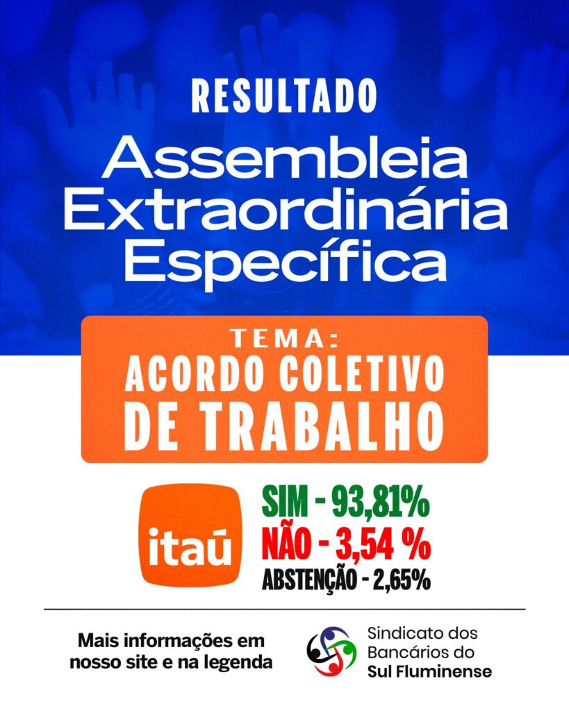 O Acordo Coletivo de Trabalho (ACT) referente ao 2026 do Itaú foi aprovado durante a assembleia realizada, nesta terça-feira (13), pelo Sindicato dos Bancários do Sul Fluminense.