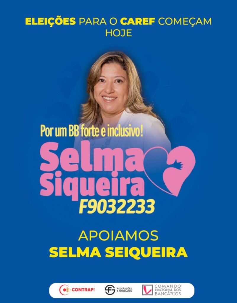 Reconhecida por suas lutas em defesa dos direitos dos trabalhadores, Selma Siqueira é a candidata com apoio da Confederação Nacional dos Trabalhadores do Ramo Financeiro (Contraf-CUT).