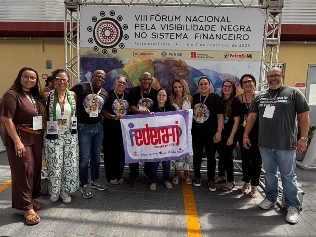 O VIII Fórum Nacional pela Visibilidade Negra no Sistema Financeiro, realizado no Ceará, nesta quinta-feira (6) e sexta-feira (7), contou com 120 participantes de diversas partes do país, entre eles, a diretora Tina Dias, do Sindicato dos Bancários do Sul Fluminense e Adriana Nalesso, presidenta da Federa-RJ. O fórum é promovido pela Contraf-CUT e marca o início das atividades pelo mês da Consciência Negra. Dados da Organização das Nações Unidas (ONU) indicam que mulheres negras recebem, em média, 53% menos que homens brancos, o que comprova que o racismo estrutural continua marcando profundamente a sociedade e o mundo do trabalho. Além disso, o mercado financeiro ainda enfrenta a sub-representação da população negra em cargos de liderança e o preconceito velado. O racismo está presente também nas estatísticas da violência. O Anuário Brasileiro de Segurança Pública de 2025 revela que 79% das vítimas de homicídios em 2024 eram pessoas negras, e quase metade (48,5%) eram jovens entre 12 e 29 anos. *Fonte: Contraf-CUT