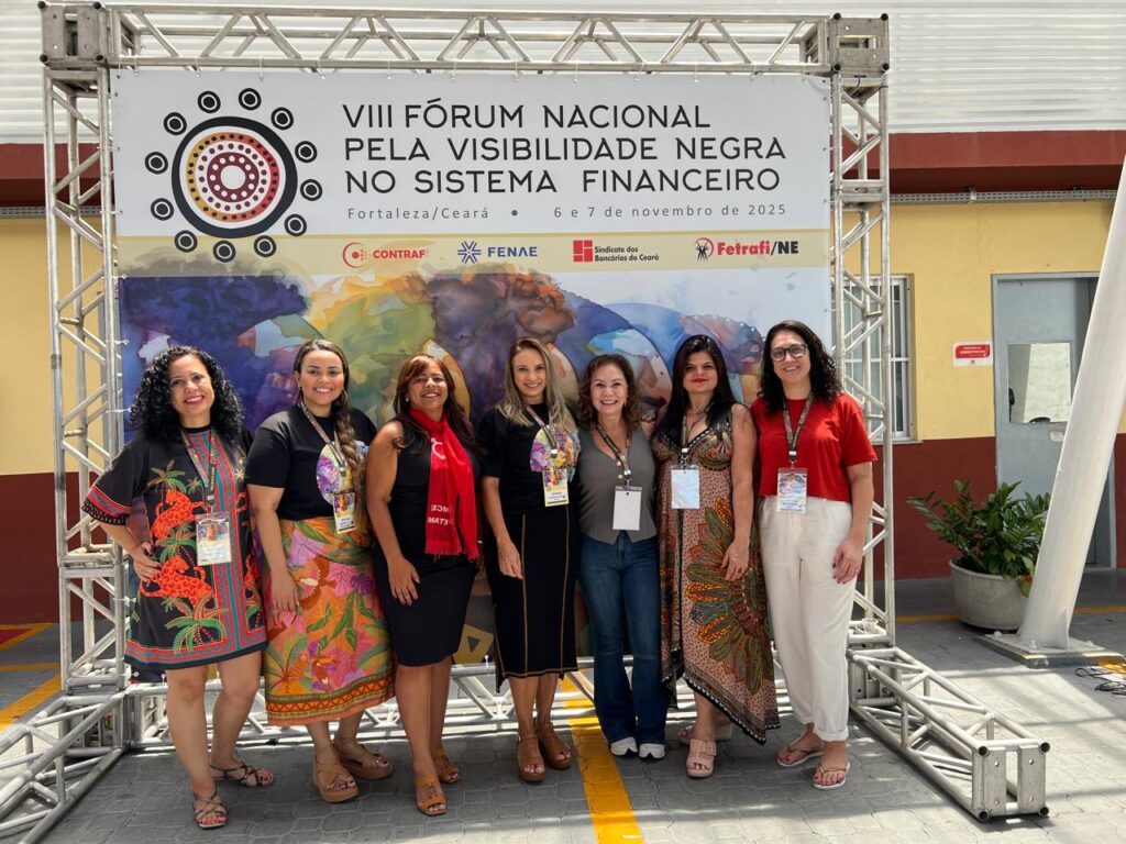 O VIII Fórum Nacional pela Visibilidade Negra no Sistema Financeiro, realizado no Ceará, nesta quinta-feira (6) e sexta-feira (7), contou com 120 participantes de diversas partes do país, entre eles, a diretora Tina Dias, do Sindicato dos Bancários do Sul Fluminense e Adriana Nalesso, presidenta da Federa-RJ.