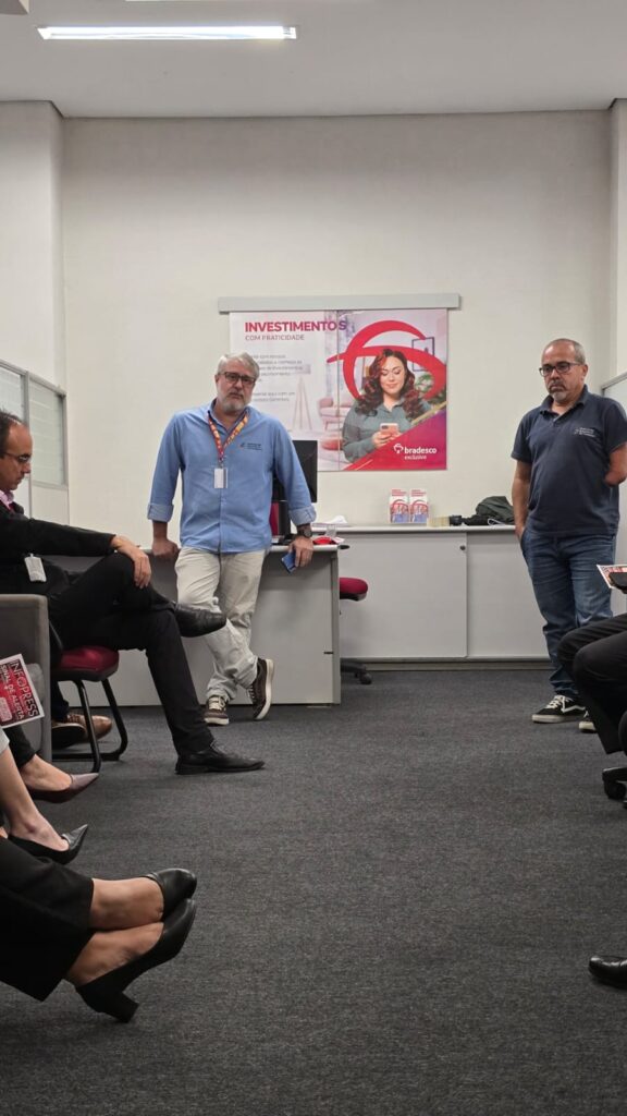 Os integrantes do Sindicato, tendo à frente o presidente Júlio Cunha, estiveram nas agências de Campos Elíseos, em Resende, e Amaral Peixoto, de Volta Redonda, onde distribuíram o informativo e conversaram os funcionários e clientes, conscientizando sobre a realidade do dia a dia do banco.
